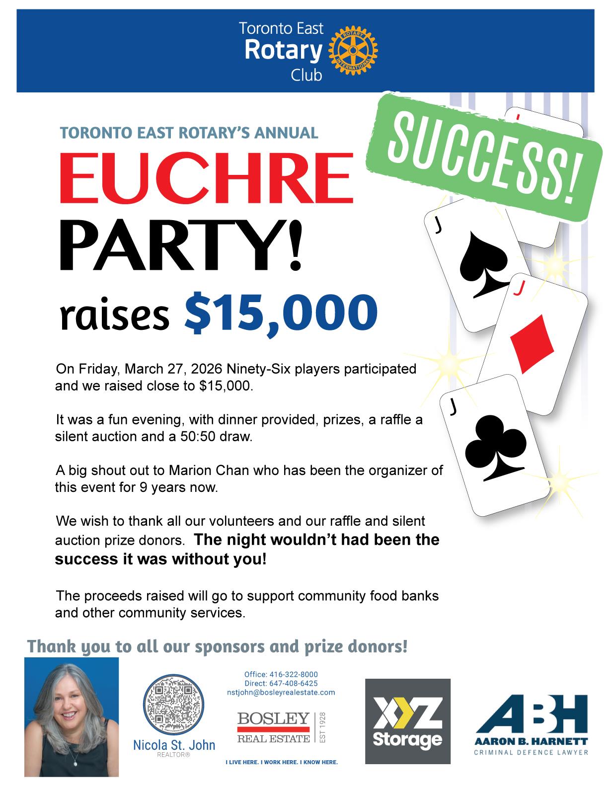 Members of the Toronto East Rotary ClubThe dedicated members of the Toronto East Rotary Club are representative of our diverse community, and everyone is committed to helping out in our community. Join our team of entrepreneurs and local business leaders linked by a common goal of wanting to make a difference in our community - and having fun along the way. |